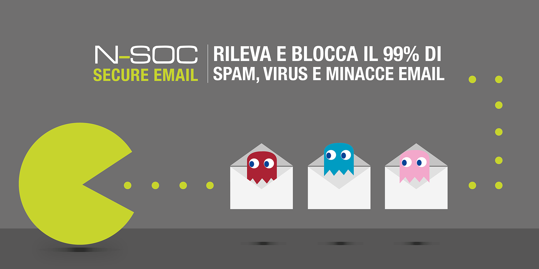 N-SOC offre il servizio SecaaS Secure Email che garantisce un sistema di difesa globale nel cloud verso spam, virus e minacce email, con la possibilità di archiviazione della posta. Il servizio consente di accrescere l’efficienza gestionale, garantendo la produttività dei dipendenti, con facilità di gestione e conformità alle normative.